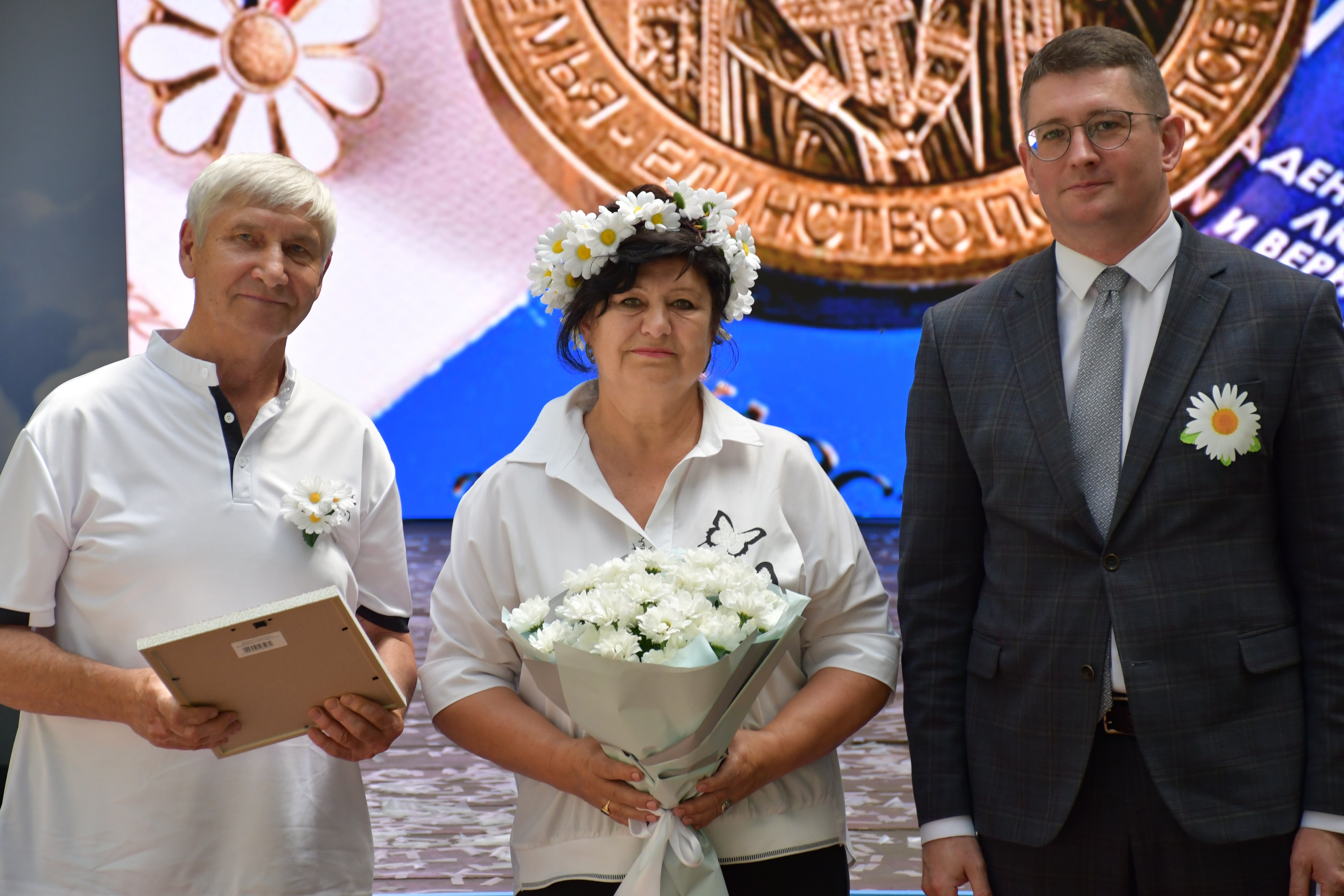 Губернатор Ульяновской области Алексей Юрьевич Русских поздравил супружеские пары, которые прожили в браке 25 и более лет. 7 супружеских пар были отмечены знаком Ульяновской области «Семья, любовь, верность», а 19 семей, которые вместе более 25 лет, отмечены общественной наградой - медалью «За любовь и верность».