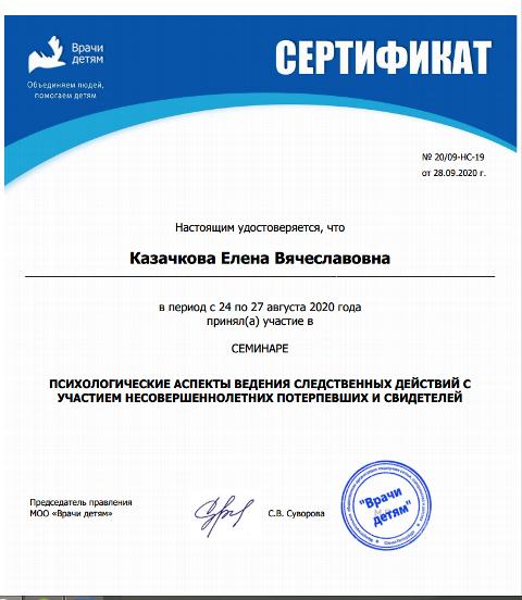 • «Психологические аспекты ведения следственных действий с участием несовершеннолетних потерпевших и свидетелей» (2020г.)